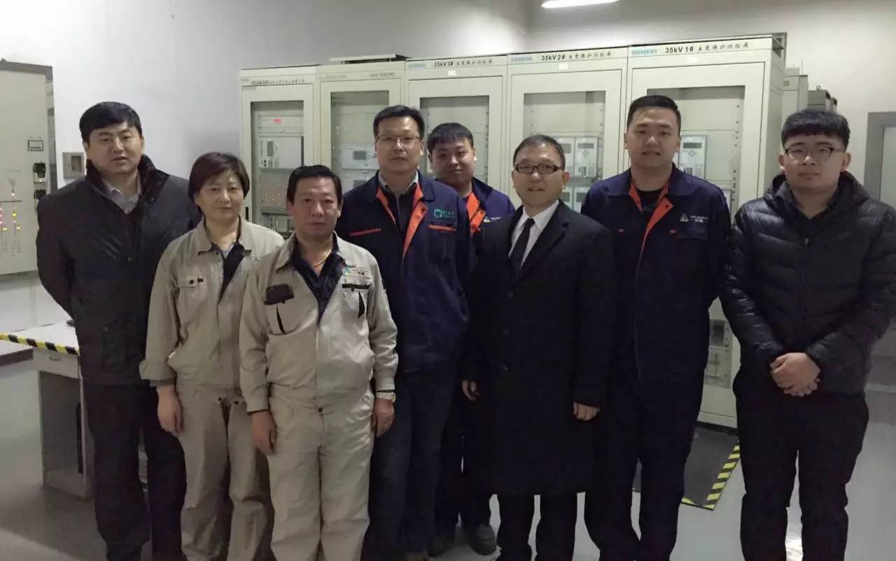 (安捷董事長龐文魁及總經(jīng)理蔣宜平與海水淡化110kV變電站工作人員)