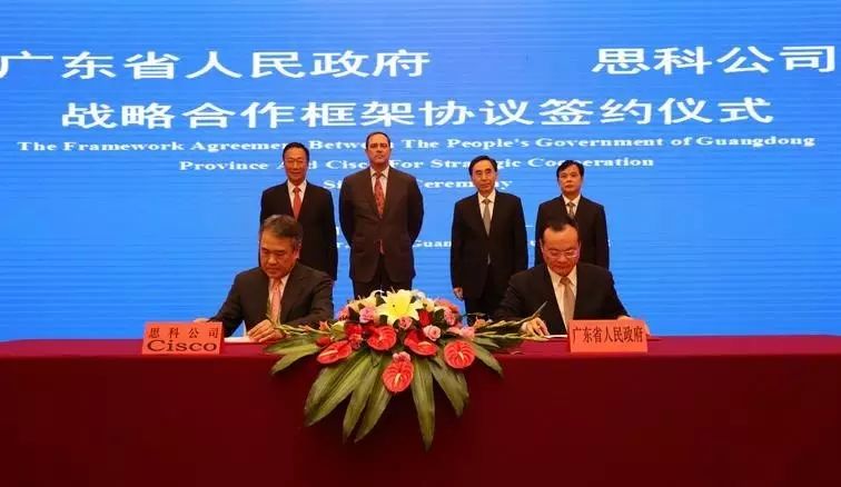 2016年11月9日下午,中共中央政治局委員、省委書記胡春華會見思科公司首席執(zhí)行官羅卓克。會見后,副省長袁寶成與思科大中華區(qū)董事長陳仕煒分別代表廣東省政府、思科公司簽署戰(zhàn)略合作框架協(xié)議。就推動廣東信息化發(fā)展和產(chǎn)業(yè)轉(zhuǎn)型升級達成合作意向。并在番禺打造一個全球最高端的物聯(lián)網(wǎng)智慧園區(qū)和示范園區(qū)。