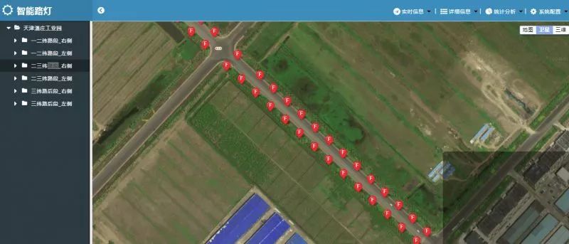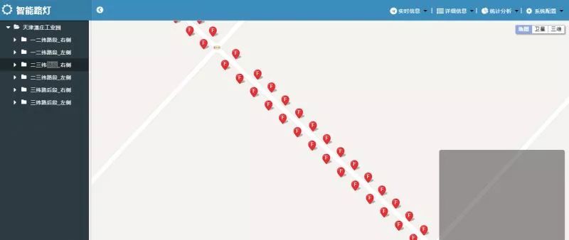 在系統(tǒng)配置功能界面可實(shí)現(xiàn)單燈控制功能、批量控制功能及定時控制功能。同時配合產(chǎn)品目錄區(qū),可實(shí)現(xiàn)路燈GIS位置查看,點(diǎn)選地圖設(shè)備,可快速查看設(shè)備狀態(tài)。