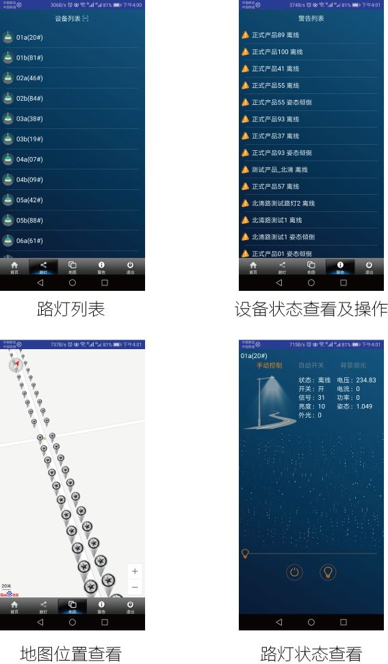 為方便管理員對路燈實(shí)時進(jìn)行監(jiān)控和管理,安捷物聯(lián)開發(fā)了智慧路燈監(jiān)控系統(tǒng)app,移動端操控更加簡便,帶給客戶更好的用戶體驗(yàn)。
