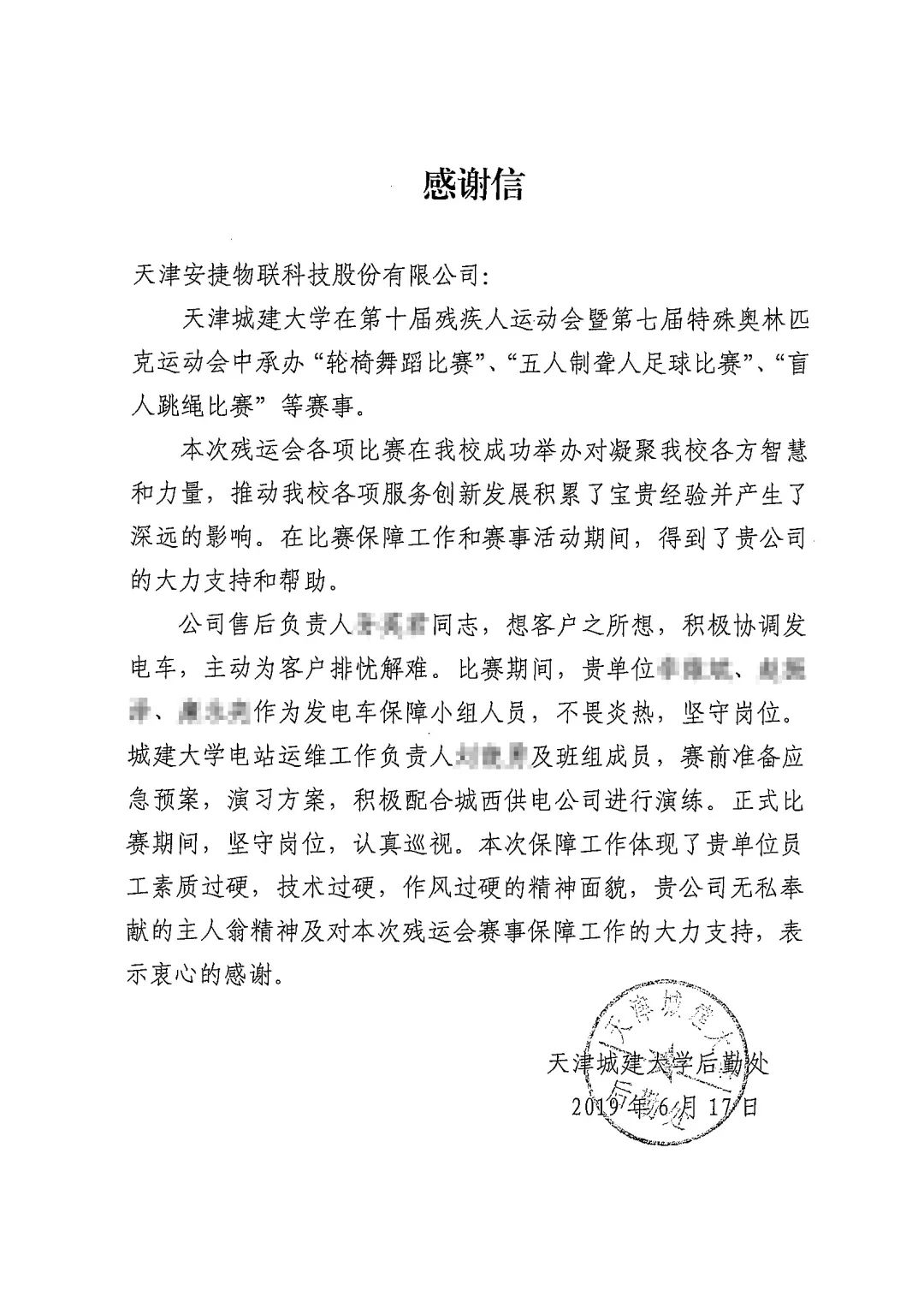 2019年8月25日,天津體育館內熱鬧非凡,全國第十屆殘疾人運動會暨第七屆特殊奧林匹克運動會開幕式在此隆重舉行;場外,天津安捷物聯科技股份有限公司保電人員全力堅守、連續(xù)奮戰(zhàn),圓滿完成了開幕式當天的保電任務。