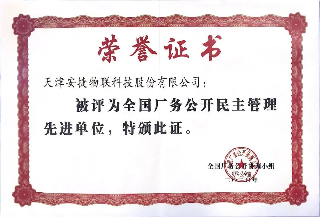 近日,天津安捷物聯(lián)科技股份有限公司被全國廠務(wù)公開協(xié)調(diào)小組授予“全國廠務(wù)公開民主管理先進單位”稱號。