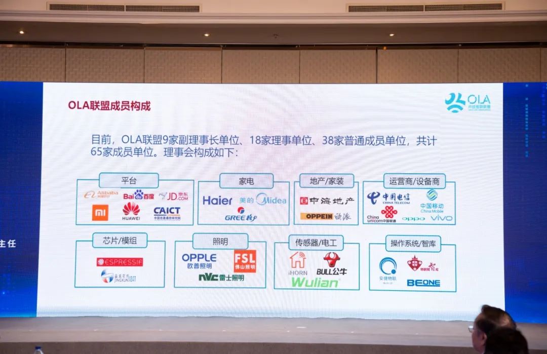 OLA聯(lián)盟目前擁有阿里、百度、京東、小米、海爾、華為、中國電信、信通院、中國移動9家理事長單位,18家理事單位,及38家普通成員單位,共65家成員單位,匯聚了諸多互聯(lián)網(wǎng)和IT領(lǐng)域的行業(yè)巨頭,在物聯(lián)網(wǎng)互聯(lián)互通標(biāo)準(zhǔn)的制定方面,具有權(quán)威性。