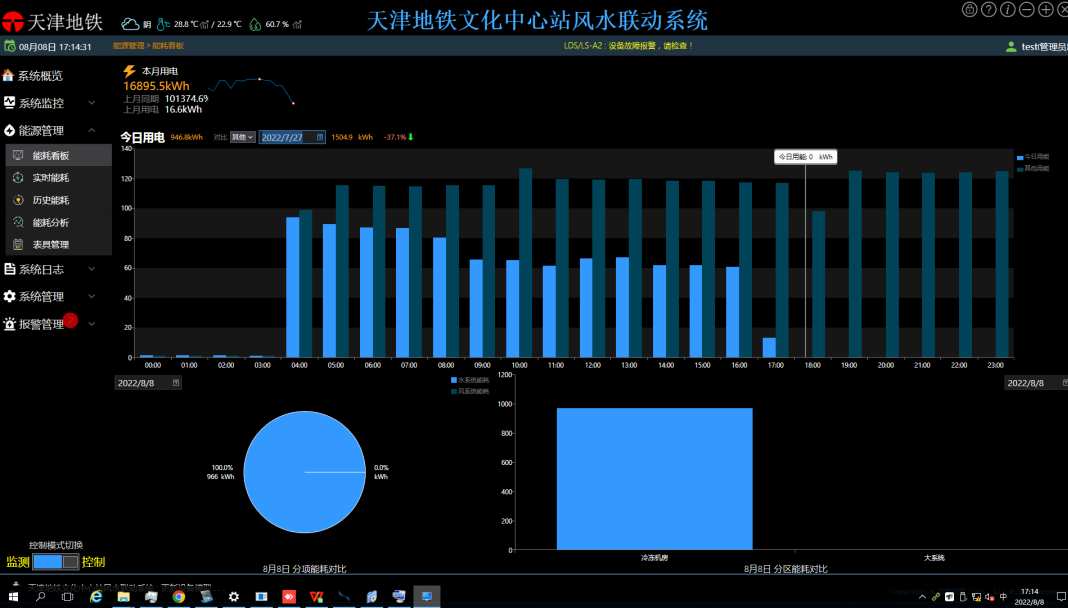 目前,風(fēng)水聯(lián)動系統(tǒng)已經(jīng)在天津6號線文化中心站進(jìn)行部署,該站是集文化、商業(yè)、休閑為一體的大型綜合性軌道交通換乘站,客流量大、換乘通道多、客流分布不規(guī)律,傳統(tǒng)的人工調(diào)節(jié)空調(diào)模式能耗高、靈活性差,更換為安捷風(fēng)水聯(lián)動系統(tǒng)后,可根據(jù)站內(nèi)客流量的變化,第一時(shí)間進(jìn)行溫度的調(diào)節(jié),并根據(jù)同時(shí)段出行情況,進(jìn)行客流預(yù)測,自動調(diào)節(jié)溫度,在制冷季可為空調(diào)系統(tǒng)節(jié)約能耗35%以上。