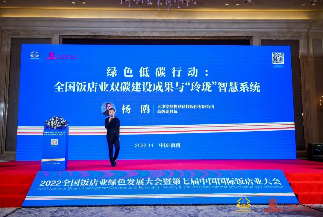 會(huì)上,天津安捷物聯(lián)科技股份有限公司高級(jí)副總裁楊鷗,正式發(fā)布了《綠色低碳行動(dòng):全國(guó)飯店業(yè)雙碳建設(shè)成果與“玲瓏”智慧系統(tǒng)》。