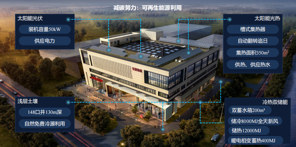 安捷物聯(lián)能源物聯(lián)網(wǎng)大廈于2017年4月建設開工,同年11月封頂,建筑面積17598.66㎡。大廈在設計建設的過程中深度融合了節(jié)能減排思路,通過采用“光熱、光伏發(fā)電、地源熱泵、分時控溫、分區(qū)措施、水蓄能、水利平衡、照明智能監(jiān)控”等多項節(jié)能減排技術措施,達到年用電減少200.5萬kWh,節(jié)電率達69.64%,相當于減少碳排放1427.1噸,在節(jié)電、節(jié)費方面效果顯著。大廈綜合運用了太陽能、地源熱泵、水蓄能、BIM等技術,可實現(xiàn)多種再生能源與建筑的一體化利用,是兼顧建筑性能與人體舒適度的高品質(zhì)綠色智慧低碳建筑,不僅節(jié)能效果突出,而且具有良好的市場可推廣性。