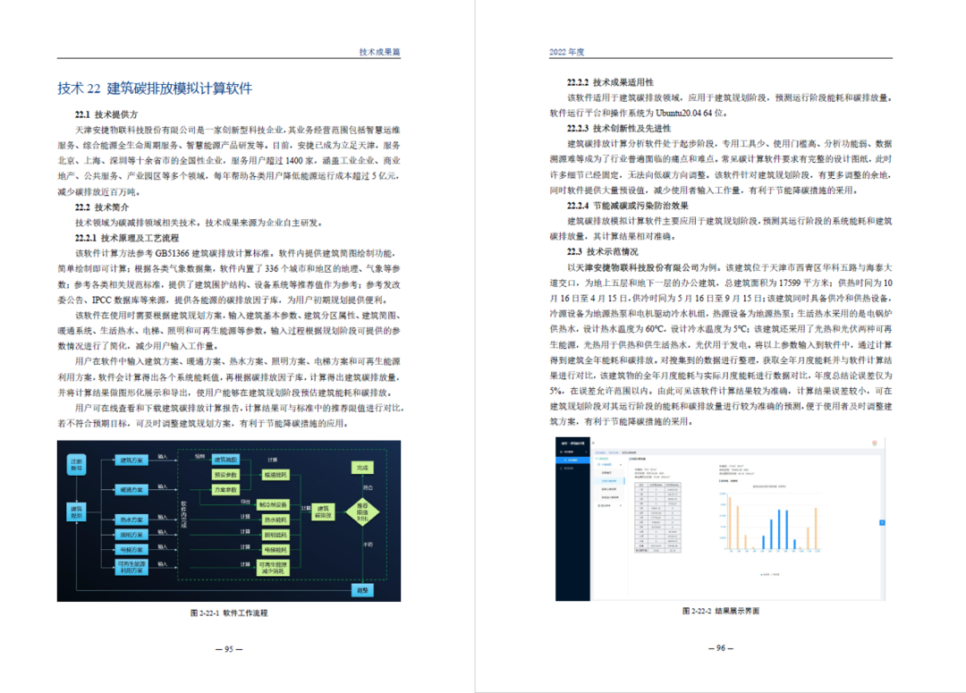 近日,天津市科技局發(fā)布了《天津市生態(tài)環(huán)境保護(碳達峰碳中和)科技發(fā)展藍皮書(2022)》,其中由天津安捷物聯(lián)科技股份有限公司自主研發(fā)的建筑碳排放模擬計算軟件,被成功收錄至《藍皮書》技術成果篇。