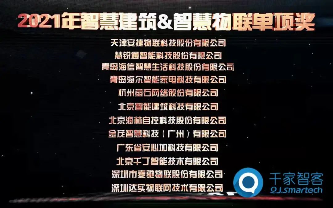 近日,由千家智客聯(lián)合千家品牌實驗室共同舉辦的2021年度“中國智能建筑品牌獎”頒獎典禮在廣州東方賓館盛大舉行。安捷物聯(lián)斬獲【2021年智慧建筑&智慧物聯(lián)單項獎】與【2021年十大建筑能源管理品牌獎】兩大獎項。