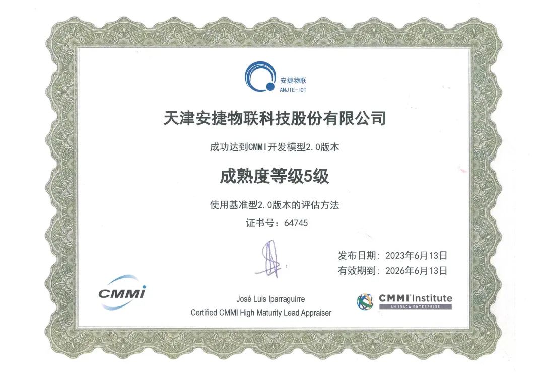 近日,安捷物聯(lián)順利通過全球軟件領(lǐng)域難度最大、規(guī)格最高的軟件開發(fā)能力成熟度認(rèn)證CMMI 5,并獲CMMI研究院ISACA頒發(fā)的CMMI 5 V2.0認(rèn)證證書。
