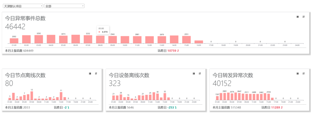 ? 云平臺實時監(jiān)控網(wǎng)關(guān)和設(shè)備的運行狀態(tài),分類統(tǒng)計和顯示異常情況。