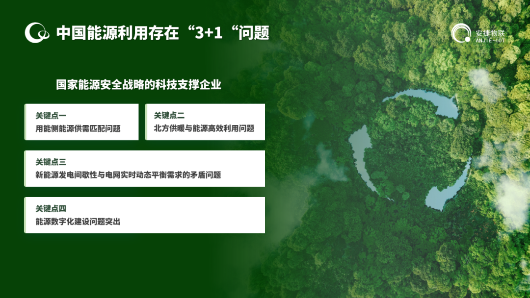 安捷物聯(lián)致力于解決我國(guó)能源利用的3+1問(wèn)題:一是用能側(cè)能源供需匹配問(wèn)題;二是北方供暖與能源高效利用問(wèn)題;三是新能源發(fā)電間歇性與電網(wǎng)實(shí)時(shí)動(dòng)態(tài)平衡需求的矛盾問(wèn)題,四是能源數(shù)字化建設(shè)的問(wèn)題。