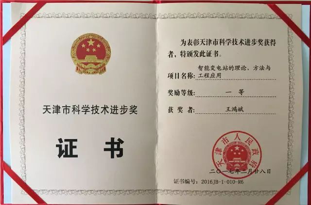 近日,天津市召開2016年度科學(xué)技術(shù)獎勵大會,本市共有189個項目獲獎。其中,一等獎23項、二等獎57項、三等獎109項,涵蓋了自然科學(xué)獎、技術(shù)發(fā)明獎和科技進(jìn)步獎等多個種類。由我公司申報的《智能變電站的理論、方法與工程應(yīng)用》項目榮獲天津市科學(xué)技術(shù)進(jìn)步一等獎,董事長劉柏呈、創(chuàng)新中心副總經(jīng)理王鴻斌分別榮獲天津市科學(xué)技術(shù)進(jìn)步個人一等獎。